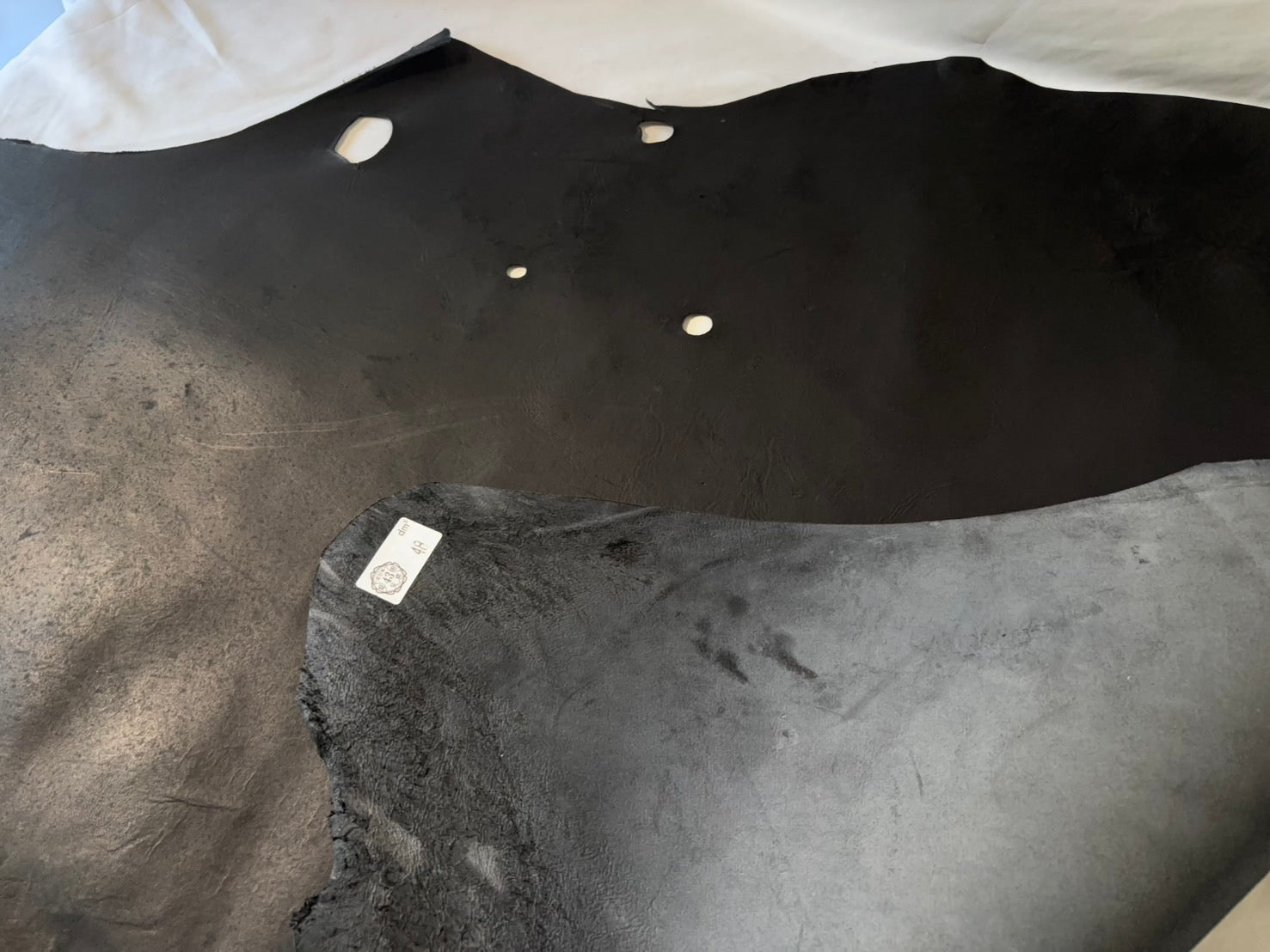 シカ革(ヌメ)パリッとタイプ改  ブラックカラー Aランク48ds 1.1mm 銀面あり シボなし艶あり