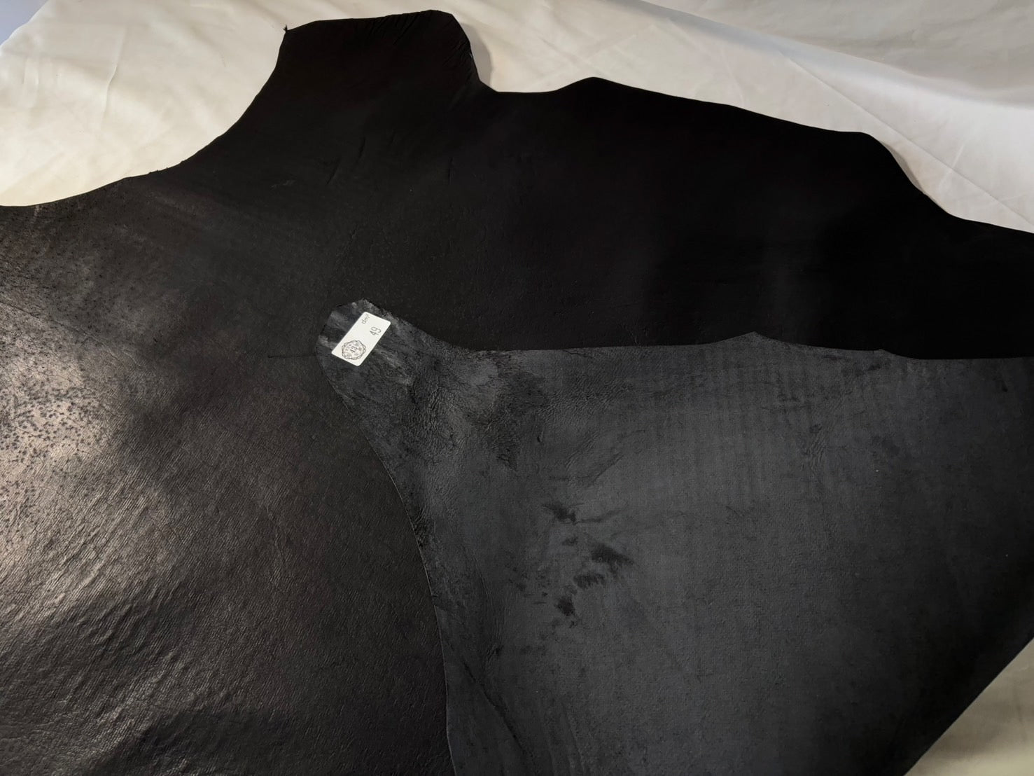 シカ革(ヌメ)パリッとタイプ改  ブラックカラー Aランク67ds 1.2mm 銀面あり シボなし艶あり