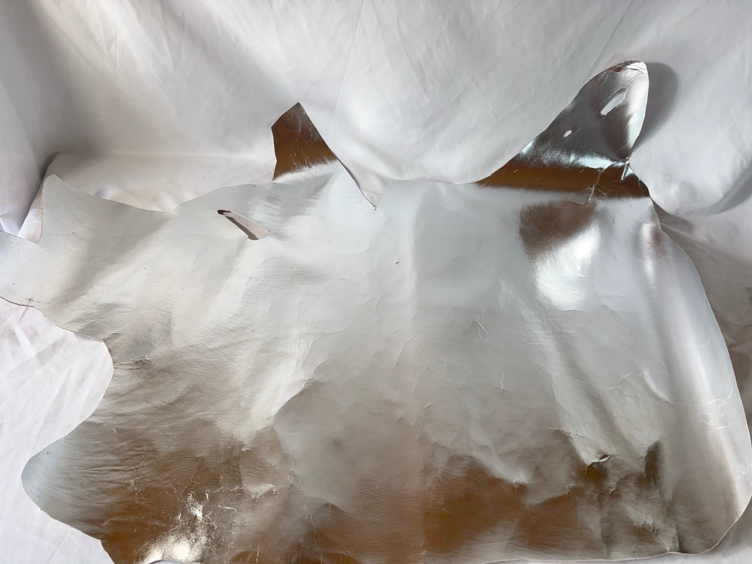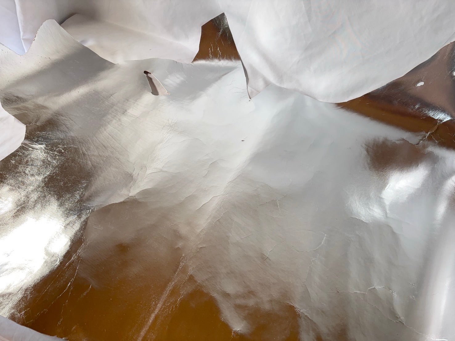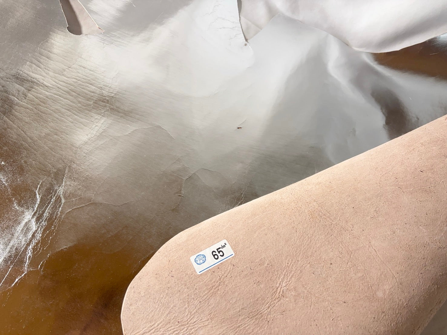鹿革(ヌメ)シルバーカラー銀箔 Aランク65ds 1.5mm銀面あり 税込み価格
