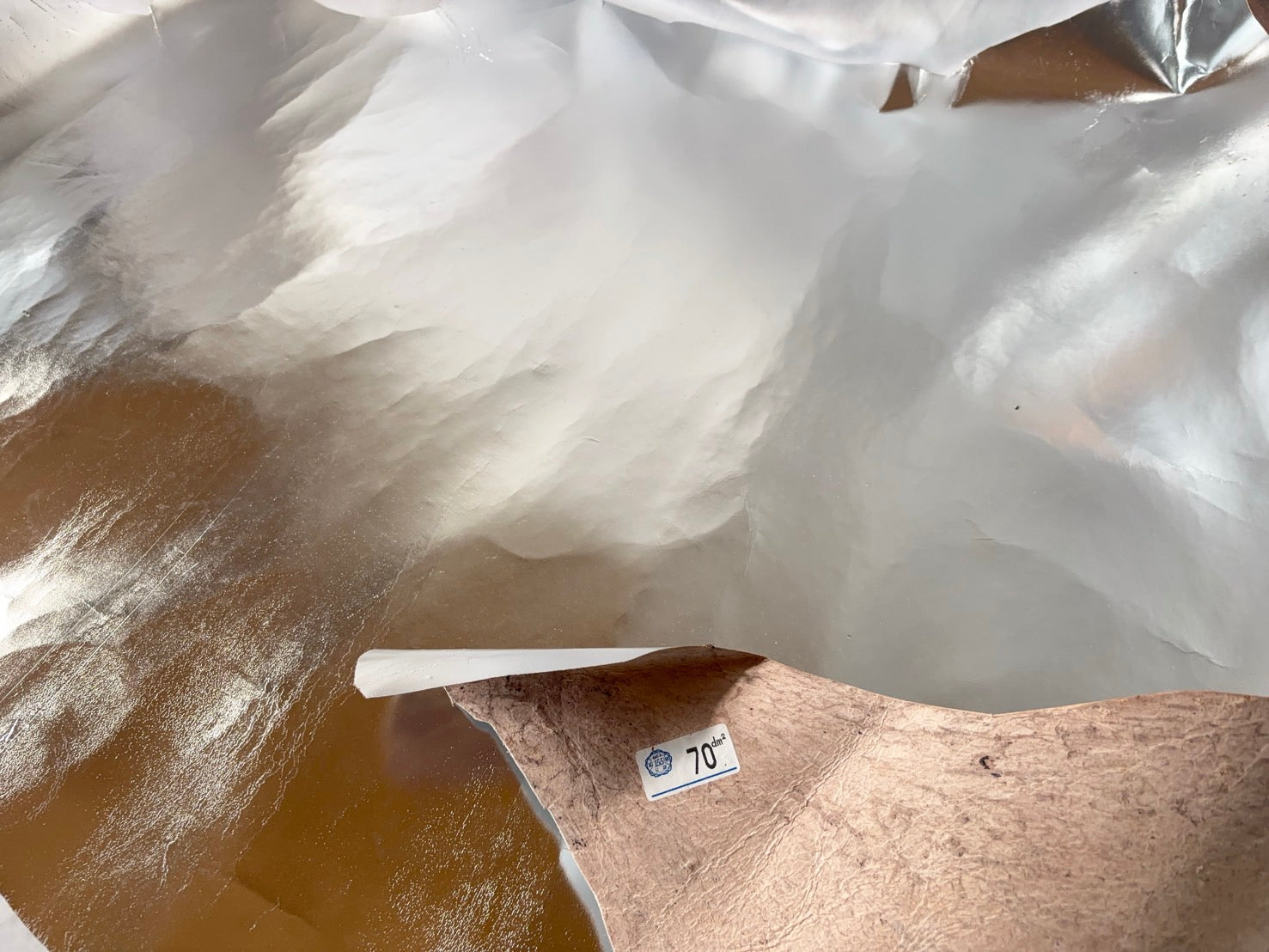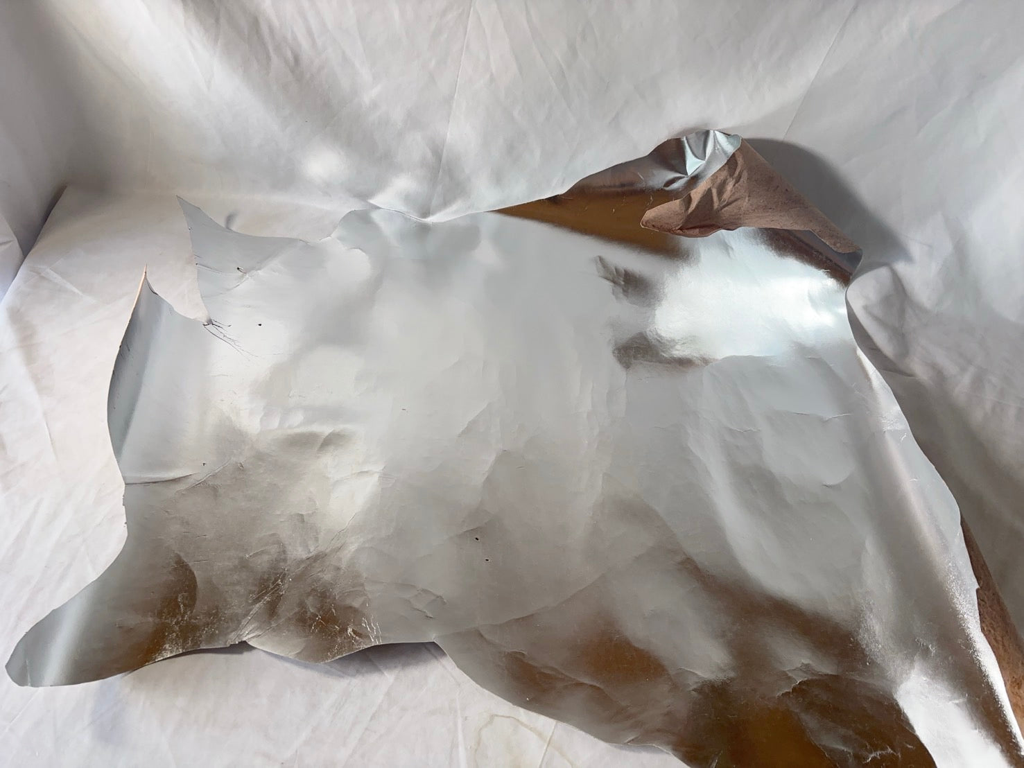 鹿革(ヌメ)シルバーカラー銀箔 Aランク70ds 0.8mm~1㎜銀面あり 税込み価格