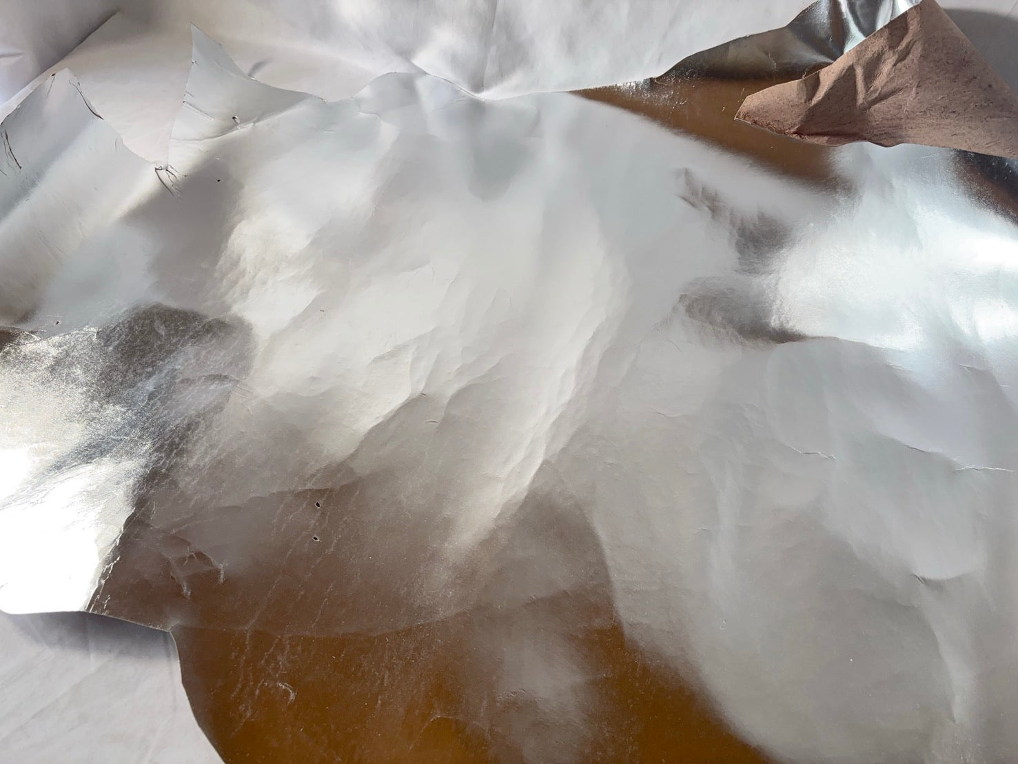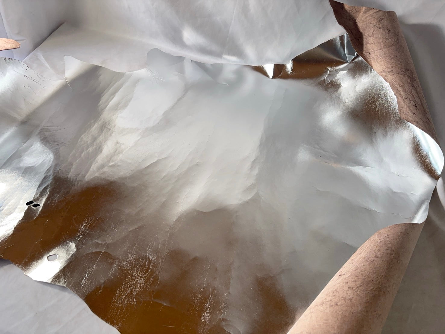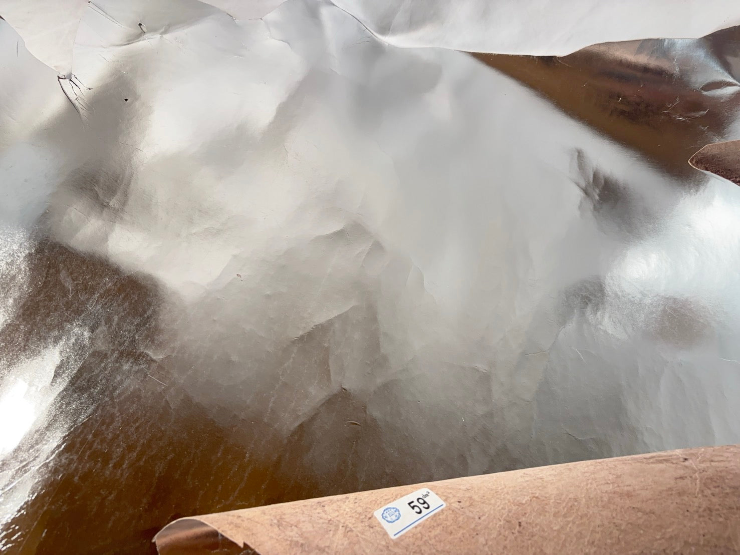 鹿革(ヌメ)シルバーカラー銀箔 Aランク59ds 0.8mm銀面あり 税込み価格
