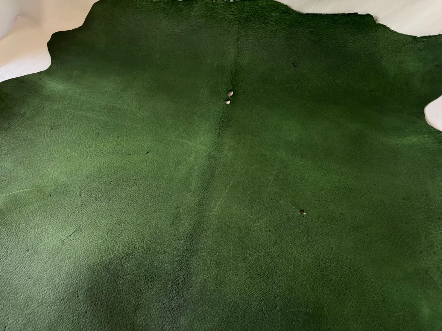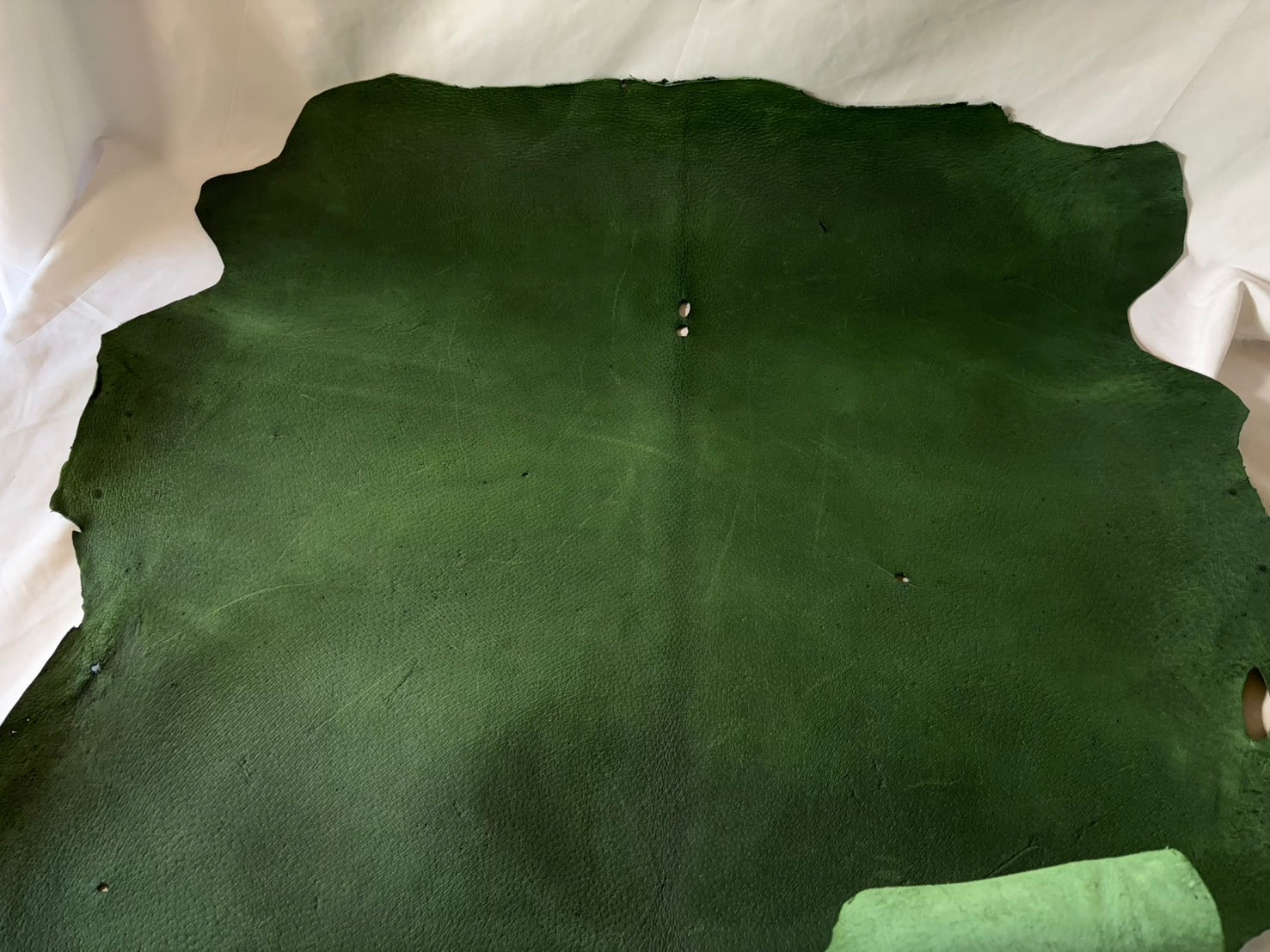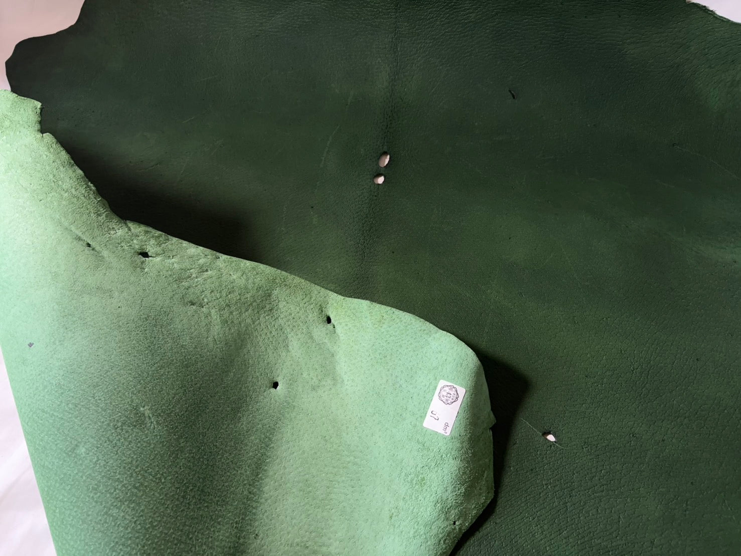 猪革(ヌメ)グリーンカラー Bランク67ds 1.6mm銀面あり 税込み価格 穴あり