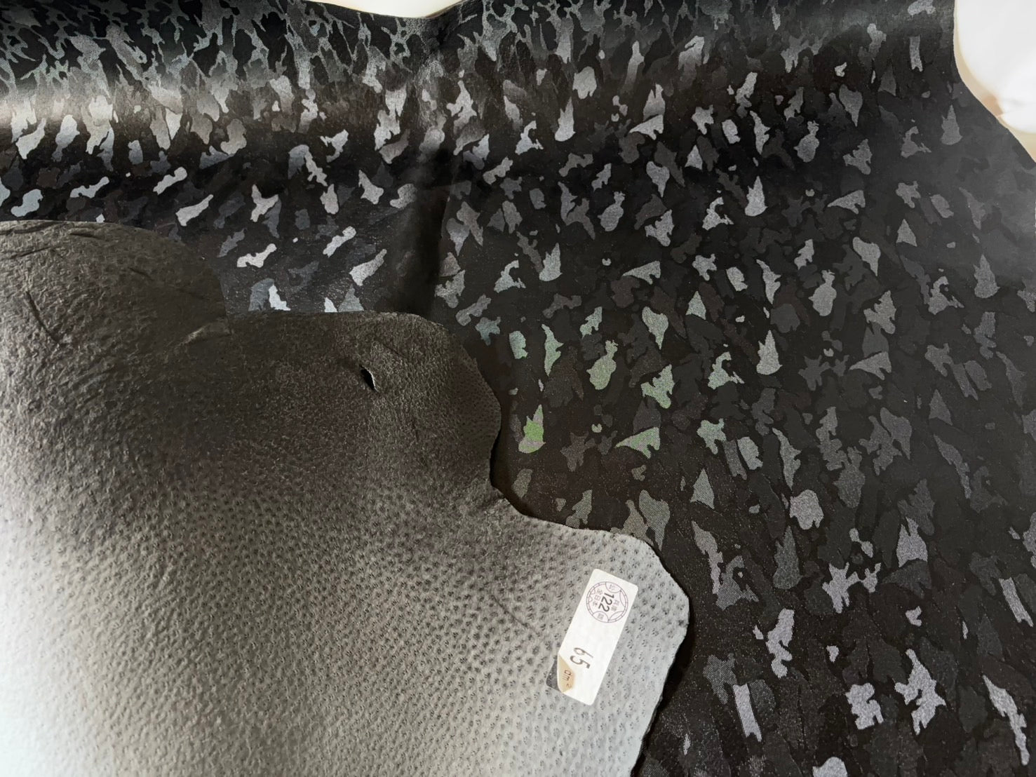 猪革(ヌメ)迷彩 ブラックカラー Bランク 65ds1.5mm銀面あり 税込み価格
